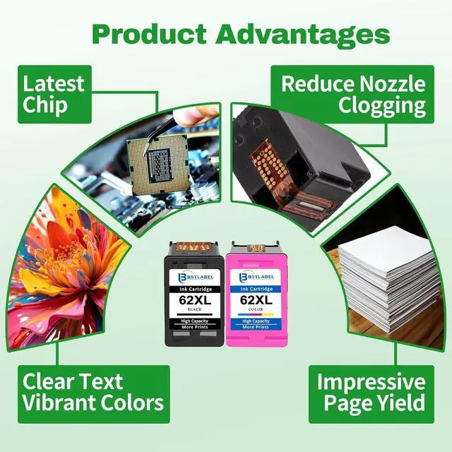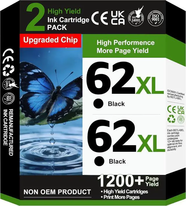 Certified Quality Assurance : ISO9001-certified remanufacturing by BSTLABEL. Each BSTLABEL for hp 62xl ink cartridge combo pack undergoes 12+ lab tests for optimal ink flow, alignment, and durability.