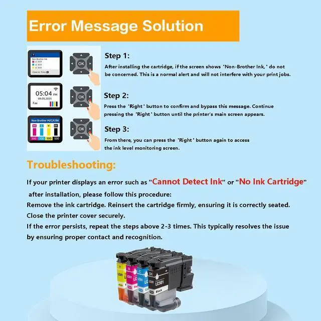 Advanced Smart-Chip Technology:By choosing our lc501 ink cartridges, you'll get the ideal solution for high-quality printing. It has a built-in lastest smart chip that is perfectly compatible with your device, ensuring that every print is smooth, efficient and vivid printout,making it easy to meet your diverse needs