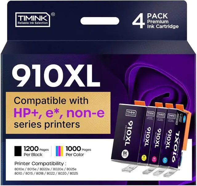 Latest Upgraded Chip: Timink 910XL ink cartridges with the latest chip Compatible with HP+, *e and non-e Series Printers
