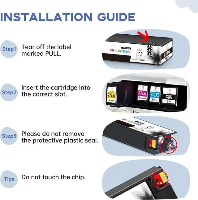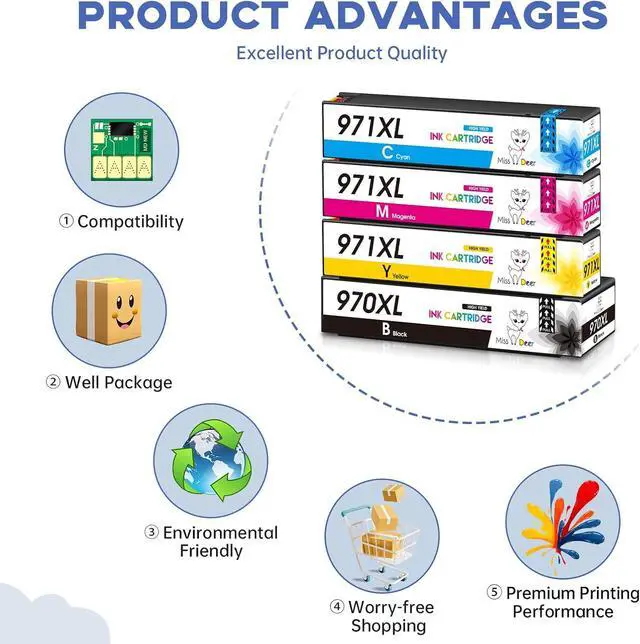 What you get : 4 pack of compatible 970XL 971XL High Yield ink cartridges (1 Black, 1 Cyan, 1 Magenta, 1 Yellow)