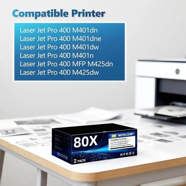 Compatible Printer: 80X Toner Cartridge Compatible for LaserJet Pro 400 M401dn, M401dne, M401dw, M401n; Pro 400 MFP M425dn, MFP M425dw Printers