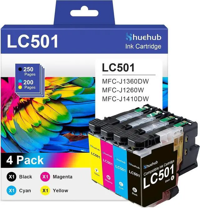 Package Contents: 1 x Black LC501BK, 1 x Cyan LC501C, 1 x Magenta LC501M, 1 x Yellow LC501Y, 4 Pack LC501 Ink Cartridges
