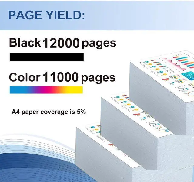 [HIGH PAGE YIELD]: Black 12000 pages 11000 color pages (5% coverage on A4 paper)