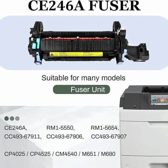 [COMPATIBILITY] Specifically designed for printers CP4025, CP4525, CM4540, M651, and M680, this fuser is compatible with multiple part numbers including CE246A and RM1-5550 for use.