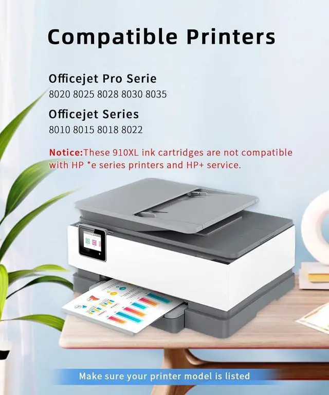 Printer Compatibility: 910XL ink cartridges work with HP OfficeJet Pro 8020 8025 8035 8028 8030; Work with HP OfficeJet 8010 8015 8018 8022 Printer