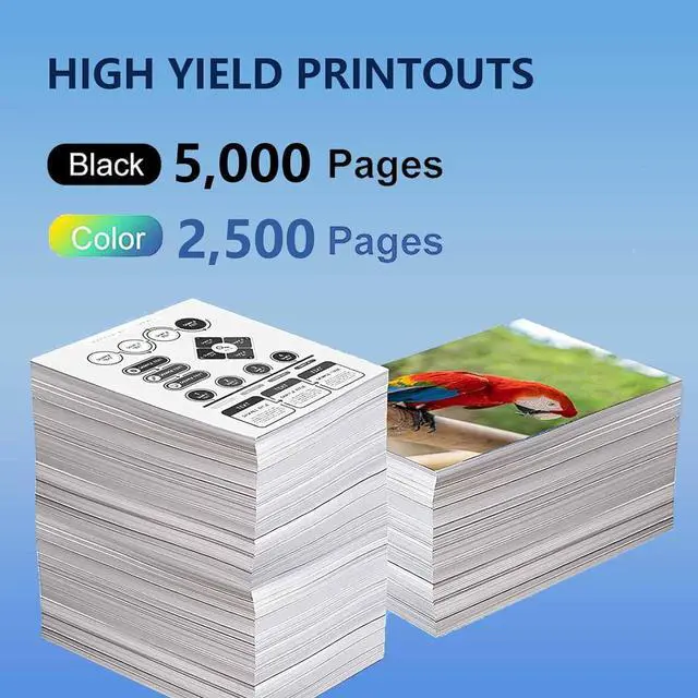 High Yield Ink Combo Pack: Black ink cartridge yields up to 5,000 pages, color up to 2,500 pages (5% coverage, A4). This combo pack reduces replacement frequency, ideal for high-volume printing in offices, schools, and creative projects
