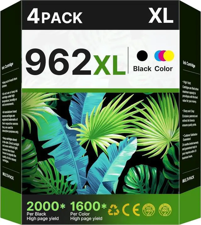 HIGHER PAGE YIELD: Print more paged with X-Large capacity. 962xl ink cartridges combo pack up to 2000 pages per 962XL black cartridge, 1600 pages per 962XL color cartridge.(At 5% coverage on A4 paper)