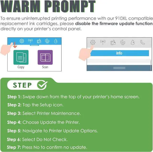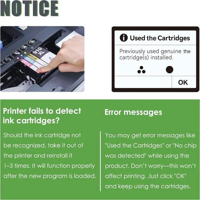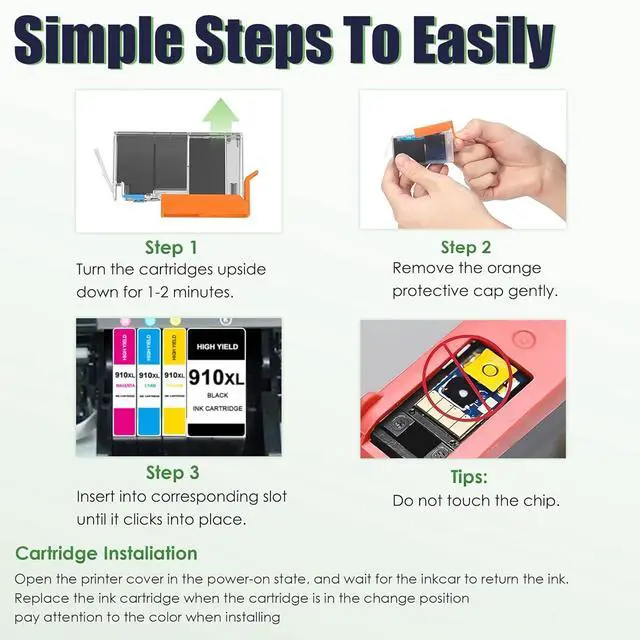 For 910XL Ink Cartridges Combo Pack Compatible Printers: 8010 8015 8018 8022 8020 8025 8028 8030 8035 8012e 8014e 8015e 8022e 8020e 8024e 8025e 8028e 8035e Printers