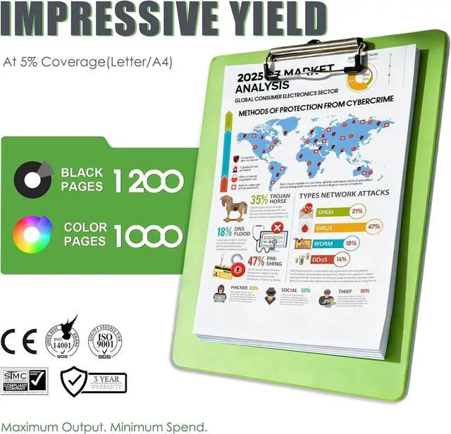 High Page Yield: Up to 1200 Pages for 910XL black, 1000 Pages for ink 910XL color combo pack (at 5% coverage)