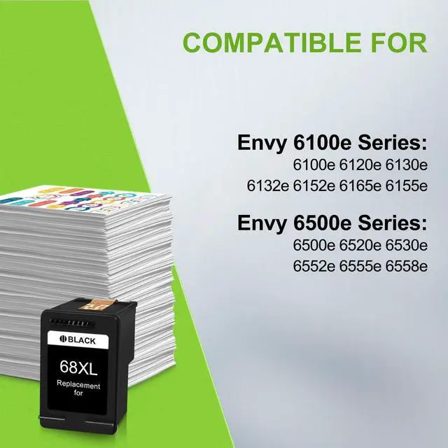 For 68XL Ink Cartridge Printer Compatibility: Envy 6100e Series: 6100e 6120e 6130e 6132e 6152e 6165e 6155e; Envy 6500e Series: 6500e 6520e 6530e 6552e 6555e 6558e
