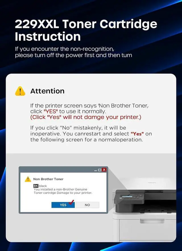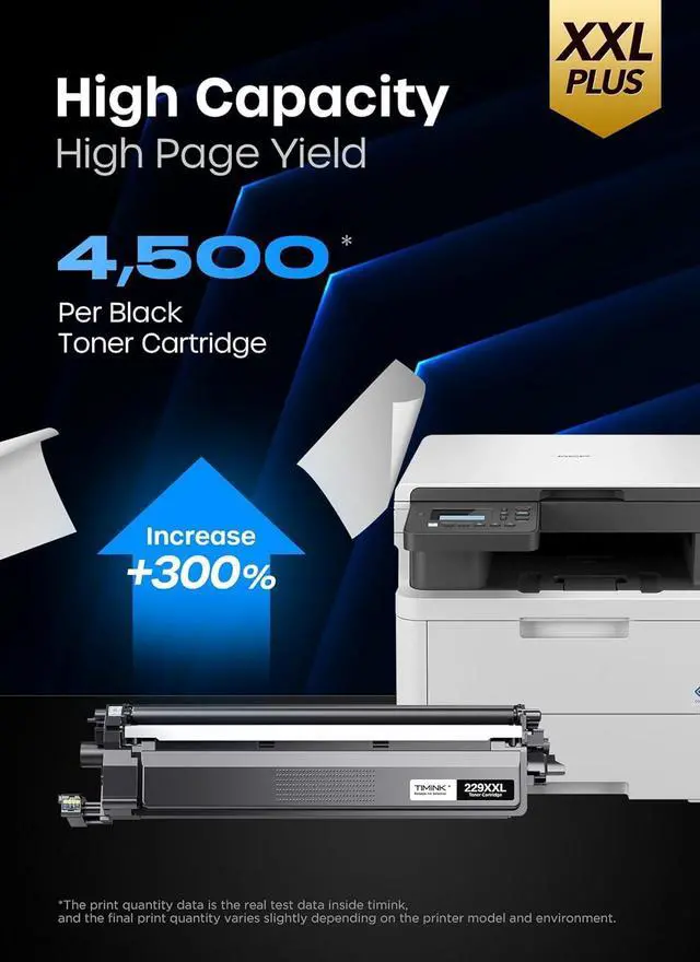 Page Yield: Up to 4500 pages for TN229XXL black toner cartridge-TN229XLBK (Letter/A4, at 5% coverage)