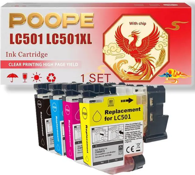 Page Yield for Office Use: The black LC501 LC501XL Ink Cartridge provides up to 500 pages ,while the color Ink Cartridge support up to 500 pages (At 5% coverage of A4 paper)