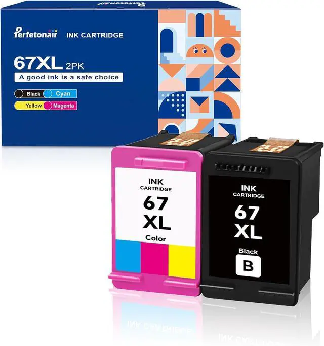 Package Contents: 67XL black and color ink cartridges replacement for HP 67 67XL ink cartridges black/color combo pack (1 × 67XL black, 1 × 67XL Tri-color ink cartridge