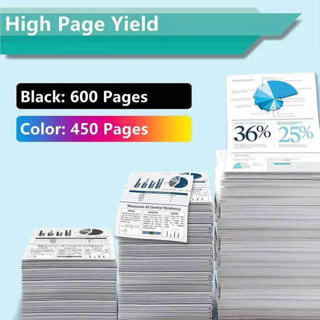 High Yield: 600 Pages for Black ink and 450 Pages for Magenta Cyan Yellow Color ink at 5% coverage (Letter/A4)