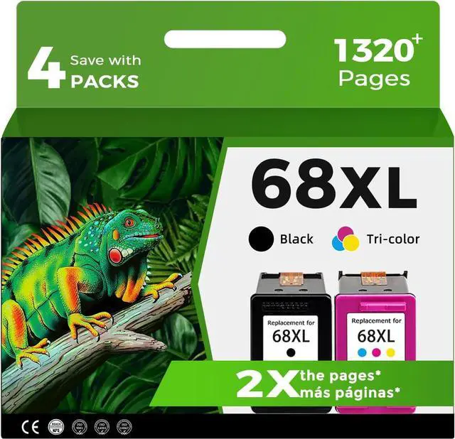 Package Contents: 2 High-yield combo Pack 68 Ink Cartridges(1 × 68xl Black Ink Cartridge, 1 × 68xl Tri-color Ink Cartridge)