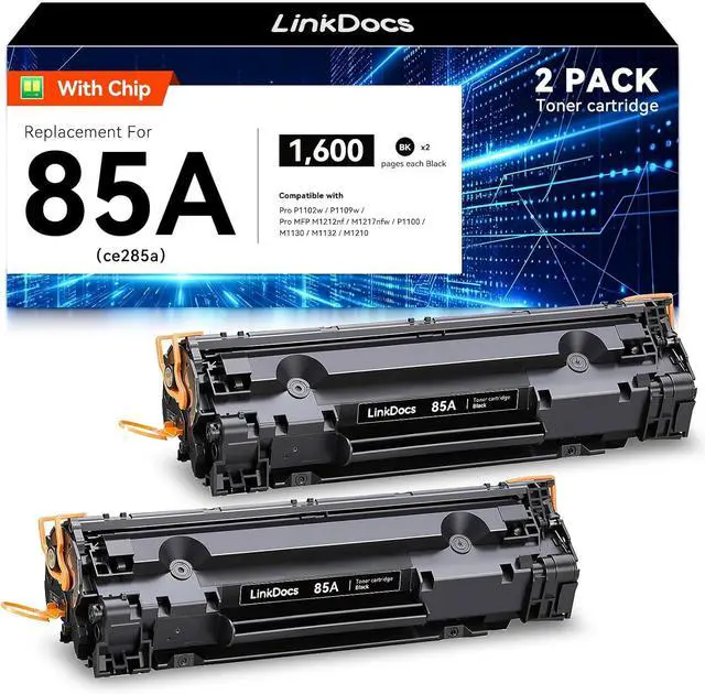 Package Contents: 2 pack Compatible 85A CE285A black toner cartridge compatible with HP laserjet p1102w ink cartridge