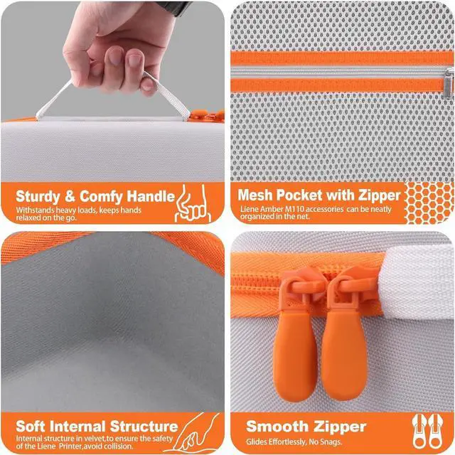 Stay organized with the dual-layer mesh pocket, designed for Liene Amber M110 4x6 photo printer accessories. Store power cables, Liene sticker printer paper, Liene photo printer paper & cartridge, and Liene photo printer ink cartridges neatly. This flexible storage system keeps your Liene Amber M110 sticker printer and Liene Amber M110 photo printer for iPhone tools accessible and ready for crafting, instant printing, or DIY projects with Liene 4x6'' photo printer sheets and sticker paper.