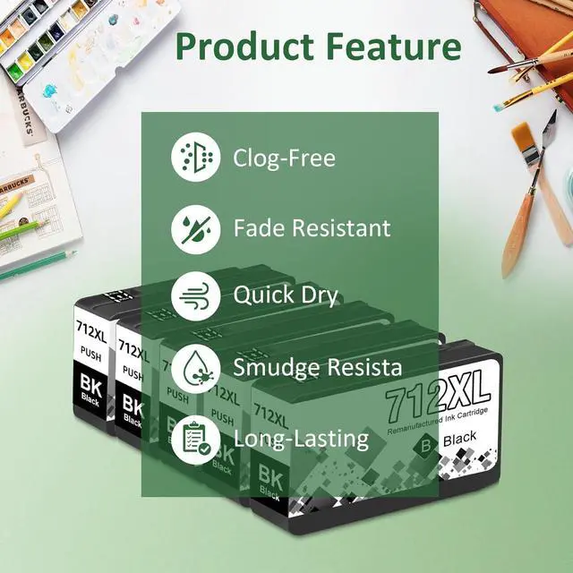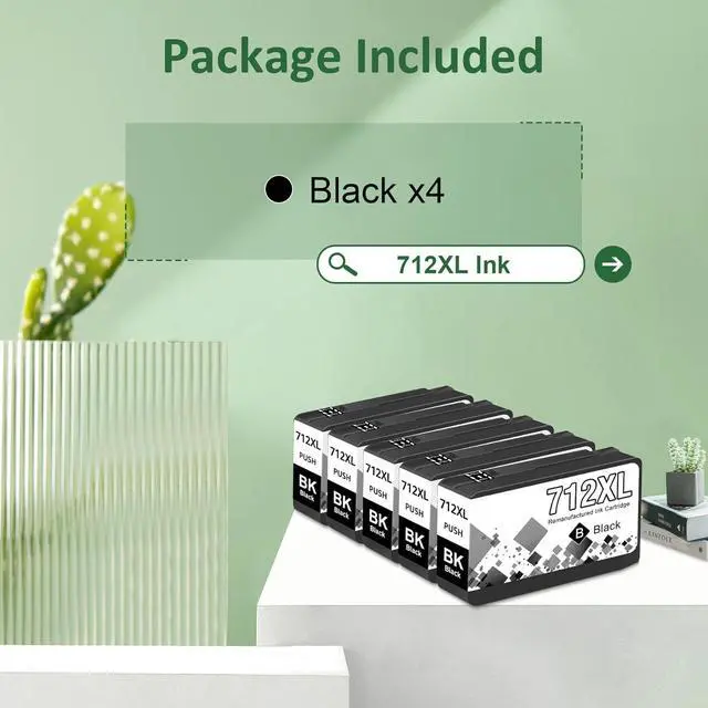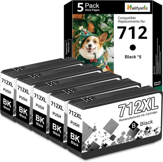 Package Contents: 5Pack Compatible 712XL Ink Cartridges (5 Black).