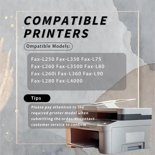 This product is made of advanced technology, compatible for Canon Fax-L250 Fax-L350 Fax-L75 Fax-L260 Fax-L3500 Fax-L80 Fax-L260i Fax-L360 Fax-L90 Fax-L280 Fax-L4000 printers, ensuring adaptation and smooth printing experience, suitable for various printing scenarios