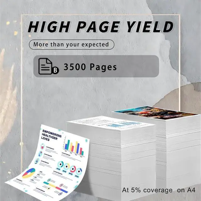 Printing page number description: This Toner Cartridges has excellent printing and can provide you with long-term stable printing support. Each black Toner Cartridges can print approximately 3500 pages (A4 paper, 5% page coverage)