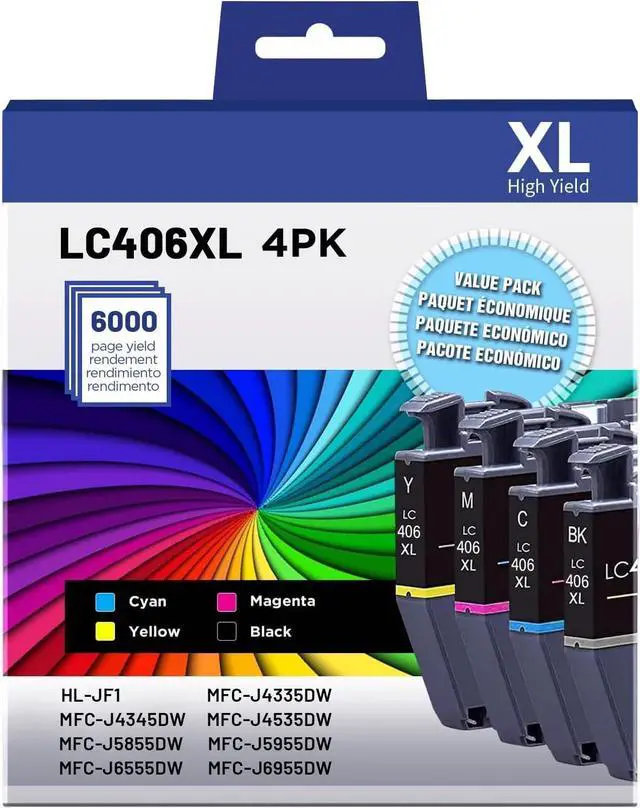 Product Name: Faedra LC406XL Ink Cartirdges Replacement for Brother LC406XL LC406 XL Ink Cartridges (1Black 1Cyan 1Magenta 1Yellow)