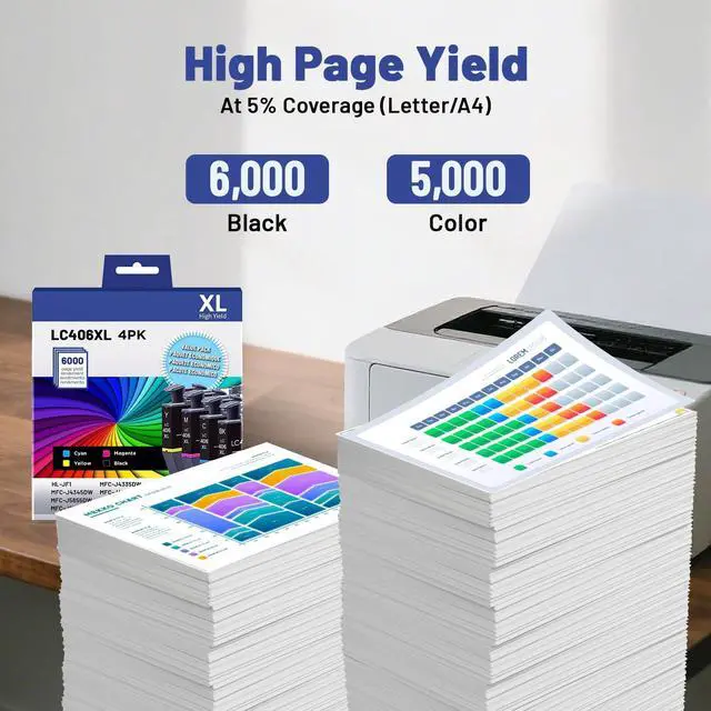 Page Yield: Up to 6000 Pages per Black LC406XL Ink Cartridge, 5000 Pages per LC406XL Color Ink Cartridge (at 5% coverage of A4 paper)