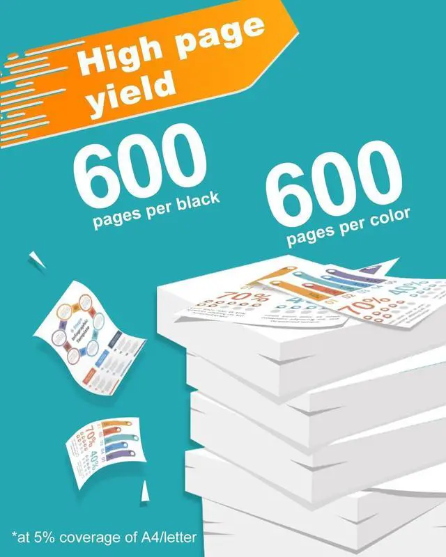 High Page Yield: 600 pages per Black LC103XL ink cartridge and 600 pages per Color LC103XL ink cartridge at 5% coverage of A4 letter.