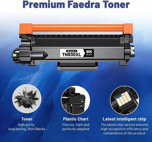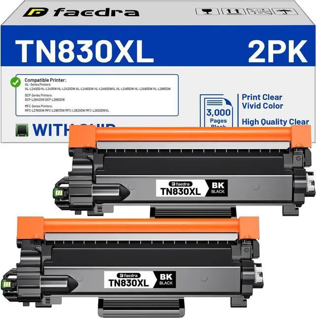 Product Name: Faedra TN830XL Toner Cartridge Remanufactured for Brother TN830XL TN830 XL Toner Cartridges (2 Black,with Chip)