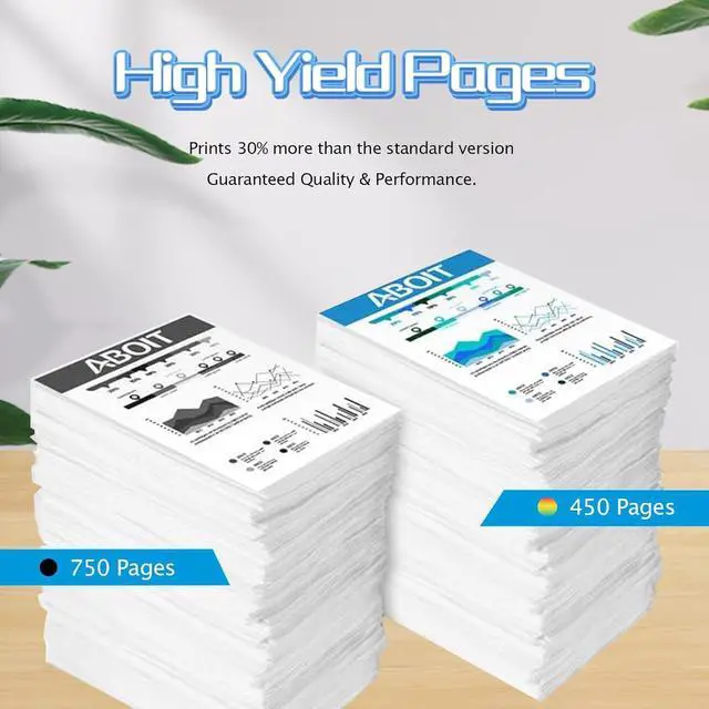 Higher Yield Work:With its larger ink capacity,Up to 750 pages for hp ink black, 450 pages for hp ink color