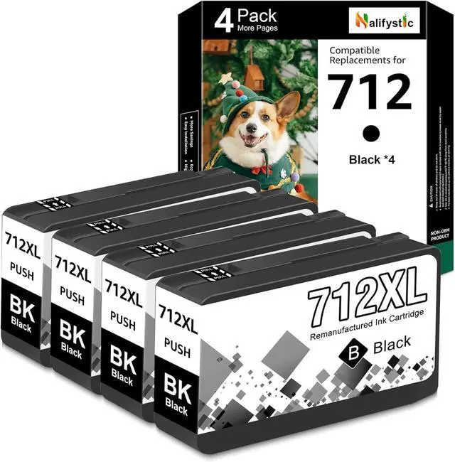Package Contents: 4Pack Compatible 712XL Ink Cartridges (4 Black).