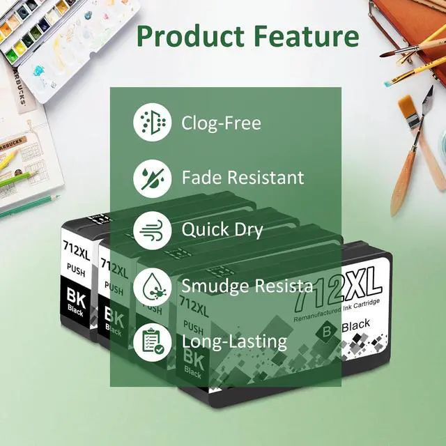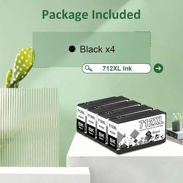 • Package Contents: 4Pack Compatible 712XL Ink Cartridges (4 Black).