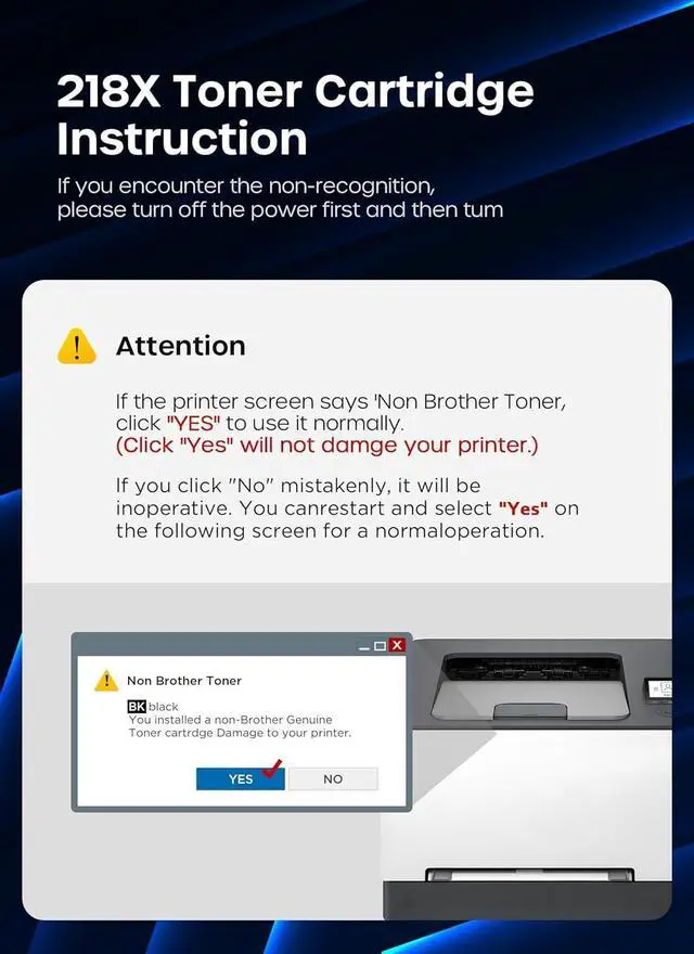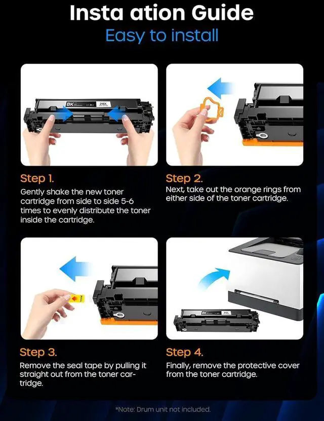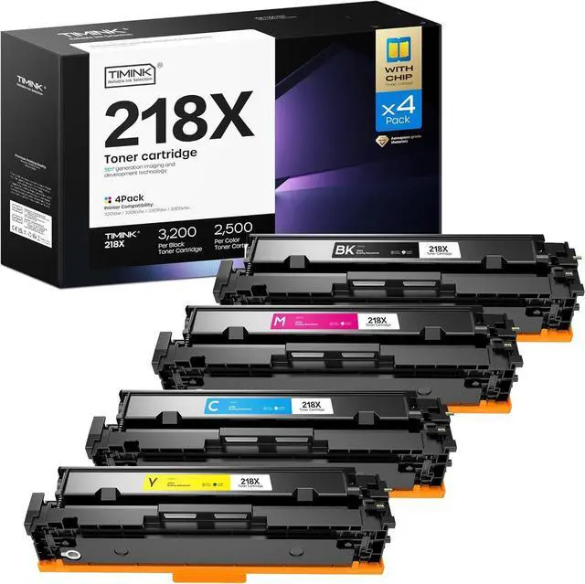 Package Contains H218X H218A Toner Cartridges Contains 1× 218X/W2180X Black toner cartridge, 1× 218X/W2181X Cyan toner cartridge, 1× 218X/W2182X Magenta toner cartridge, 1× 218X/W2183X Yellow toner cartridge, 1×user guide.