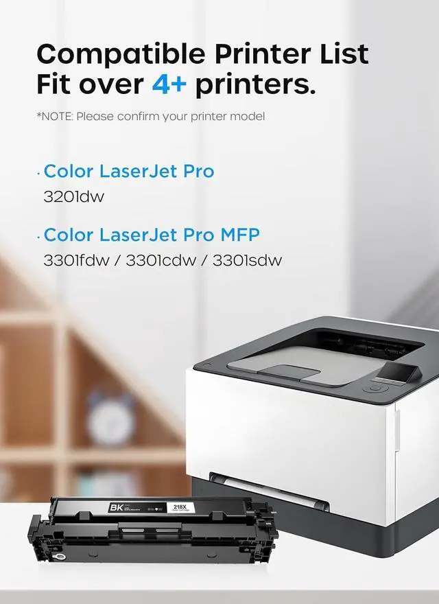 Enhanced Compatibility Compatible with 218X/218A toner cartridge replacement for HP W2180X W2181X W2182X W2183X for Color Pro MFP 3301fdw, 3301sdw, 3301cdw, 3201dw Wireless Printers.