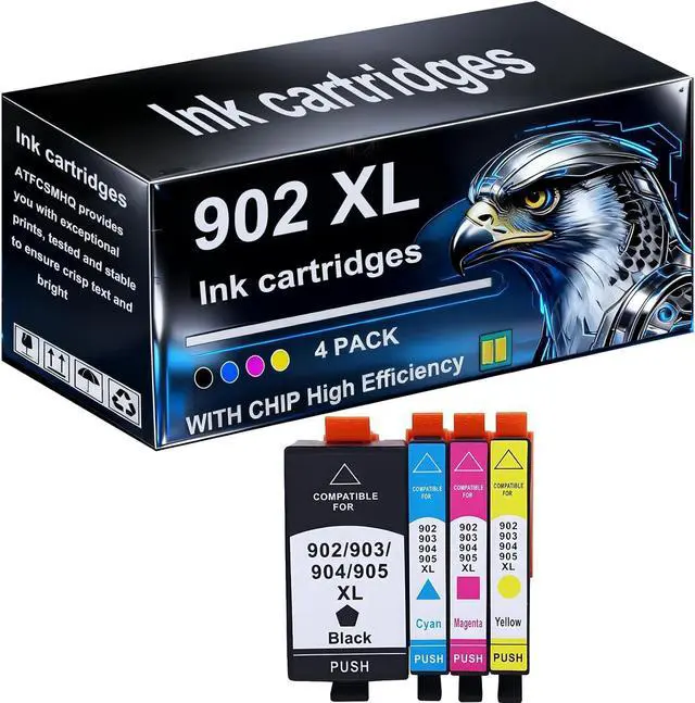 COLOR CONTAINS:4 pack high yield 902XL 902 for HP ink cartridges black and color Achieve higher page yield with 902XL 902 for HP ink cartridges to meet your printing needs