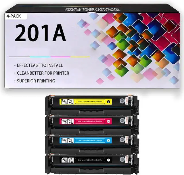 Box Includes: 1x CF400A Black, 1x CF401A Cyan, 1x CF403A Magenta, 1x CF402A Yellow Toner Cartridges