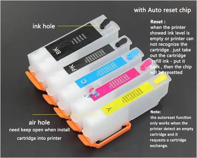 These refillable cartridges are precision-engineered for perfect fit and reliable performance with your specified printer models. The durable construction allows for multiple refill cycles while maintaining consistent ink flow and print quality. Enjoy dependable operation for all your printing projects.