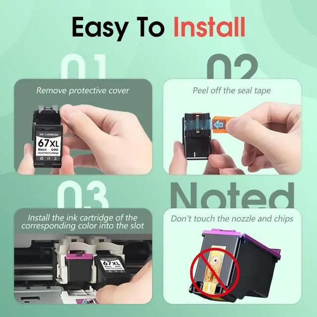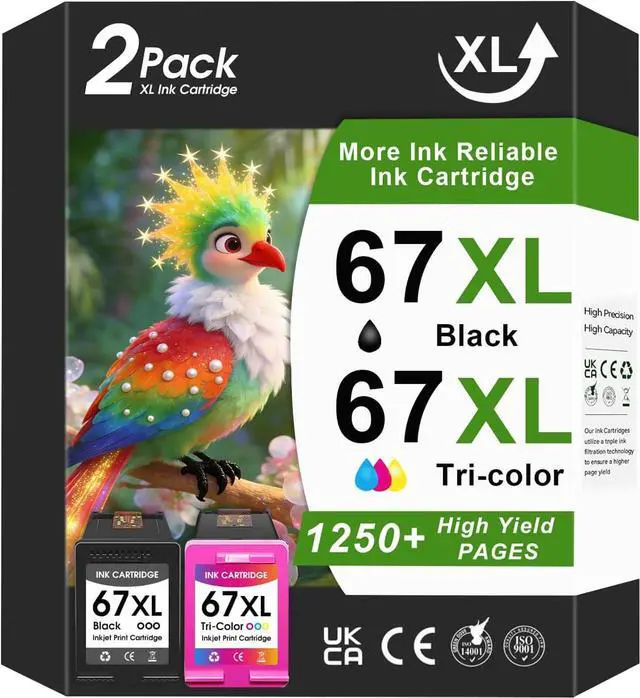 Reliable & high-quality inkThe upgraded hp 67xl ink cartridge is specially made with high-quality 67 print ink provides high-quality printing with clear text and bright colors. The packaging has good sealing performance, so there is no need to worry about ink leakage