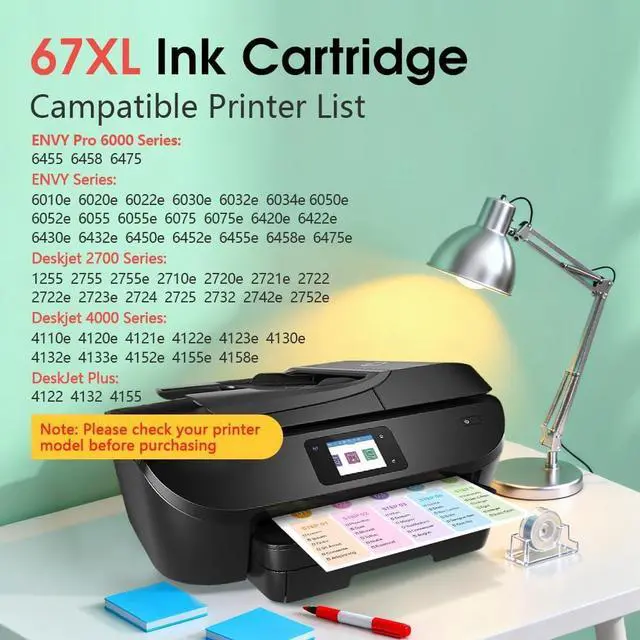 Printer Compatibility for HP Envy SeriesInk 67XL Compatible with HP Envy 6000 & Envy Pro 6400 series: 6000 6055e 6455e 6400 6010e 6020e 6022e 6030e 6032e 6034e 6050e 6052 6052e 6055 6065e 6075 6075e 6420e 6422e 6430e 6432e 6450e 6452e 6458e 6475e; Envy Pro 6455 6458 6475 6452 Printer