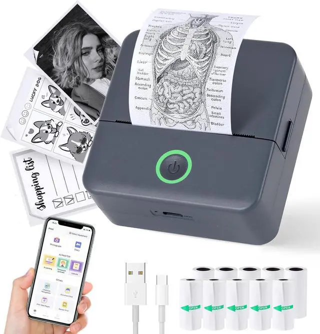 Compact & Portable Size: Mini thermal printer for phone, elegant, cute appearance, compact and lightweight body size, can be carried in a schoolbag or bag, placed on a desk, office desk, or kitchen without taking up space, you can record study notes or work plans at any time to meet your various printing needs