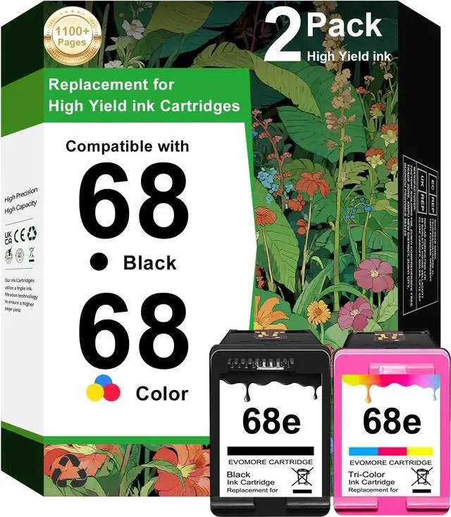 For 68e Ink Cartridges Printer Compatibility: Envy 6100e Series:6100e/6120e/6130e/6132e/6152e/6165e/6155e Envy 6500e Series:6500e/6520e/6530e/6552e/6555e/6558e