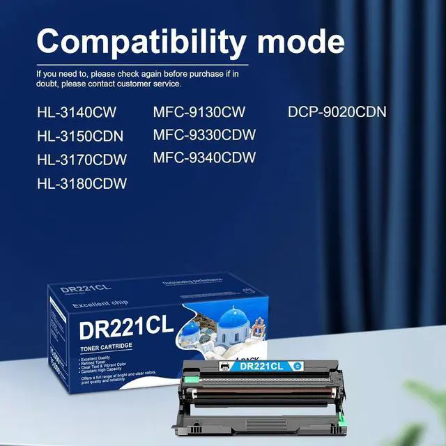 Compatible Printer Models: DR-221CL Compatible for HL-3140CW HL-3150CDN HL-3170CDW HL-3180CDW MFC-9130CW MFC-9330CDW MFC-9340CDW DCP-9020CDN Printer
