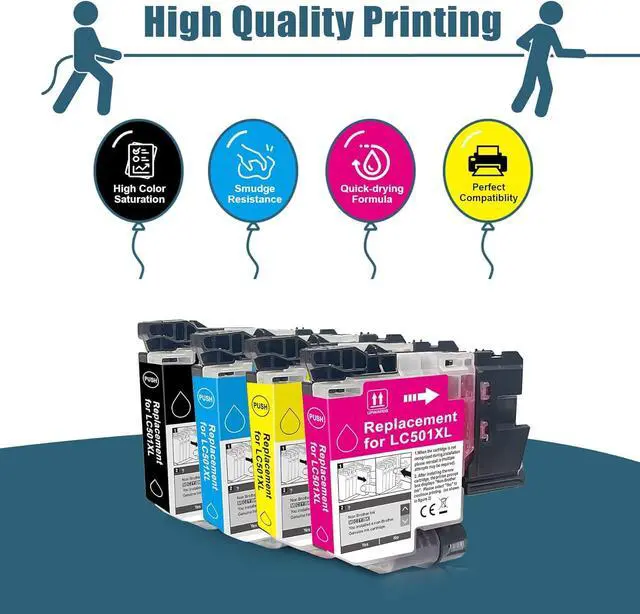 High Capacity: 1000 Pages Per LC501XL Ink Cartridge Black Cyan Magenta Yellow.