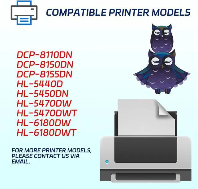 Widely compatible, applicable to multiple models: Our Drum Unit are highly compatible and compatible with Brother DCP-8110DN DCP-8150DN DCP-8155DN HL-5440D HL-5450DN HL-5470DW HL-5470DWT HL-6180DW HL-6180DWT MFC-8510DN MFC-8710DW MFC-8810DW MFC-8910DW MFC-8950DW MFC-8950DWT. printers. No matter what printing device you use, we can provide you with a suitable Drum Unit to ensure seamless docking and worry-free printing