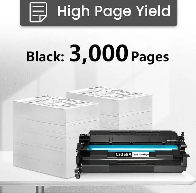 Page Yield: Up to 3,000 Pages per 58A CF258A Black Toner Cartridge at 5% coverage (Letter/A4)