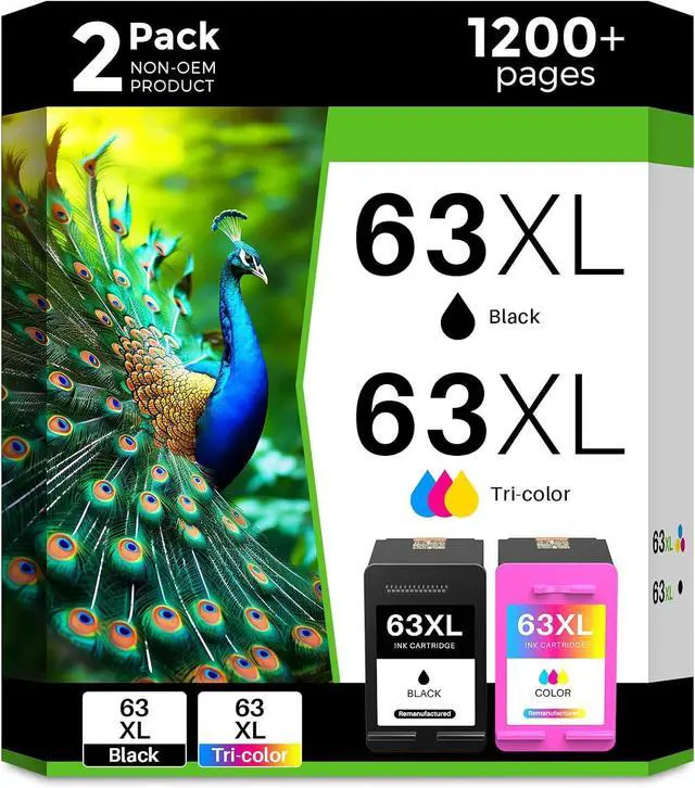 Package contents:1 x 63XL black ink cartridge, 1 x 63XL color ink cartridge