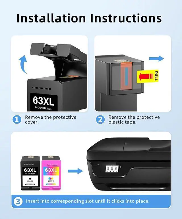 High Page Yield:750 pages for 63xl black ink cartridge, 450 pages for 63xl color ink cartridge. (At 5% coverage)