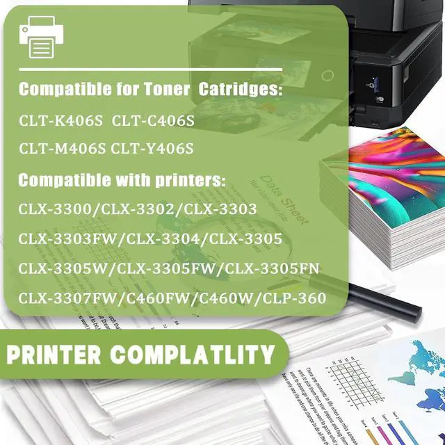 Compatible Printers: For Samsung CLX-3300 CLX-3302 CLX-3303 CLX-3303FW CLX-3304 CLX-3305 CLX-3305W CLX-3305FW CLX-3305FN CLX-3307FW C460FW C460W CLP-360 CLP-362 CLP-363 CLP-364 CLP-365 CLP-365W CLP-367W CLP-368 SL-C410W printers