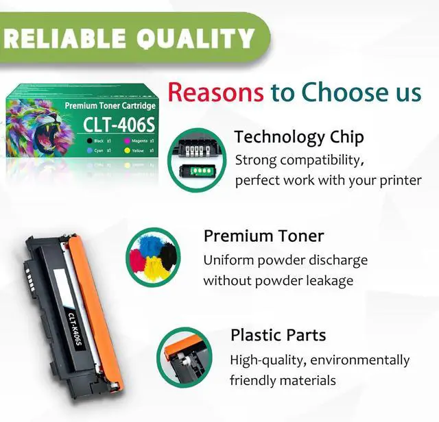 High Page Yield: Up to 1,500 pages for CLT-K406S black toner cartridges and 1,000 pages for CLT-C406S CLT-M406S CLT-Y406S color toner cartridges(With 5% coverage on A4 paper)