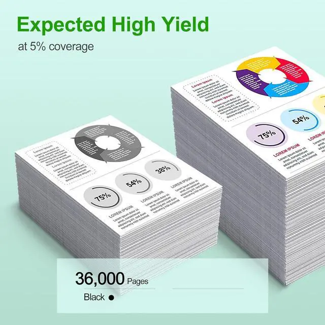 High Page Yield: 36,000 pages per Black at 5% coverage of A4/ letter.