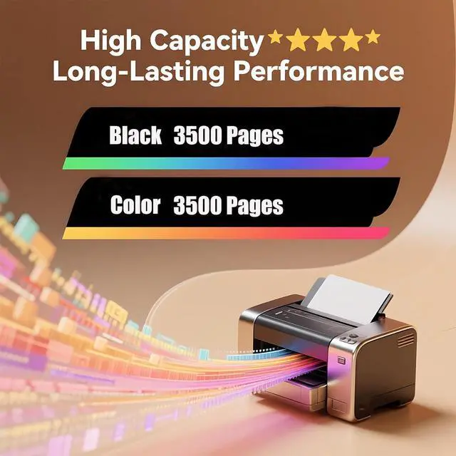 High Page Yield: Prints up to 3500 pages in color (at 5% coverage), Produces vivid color, sharp text, and consistent image quality with excellent color restoration